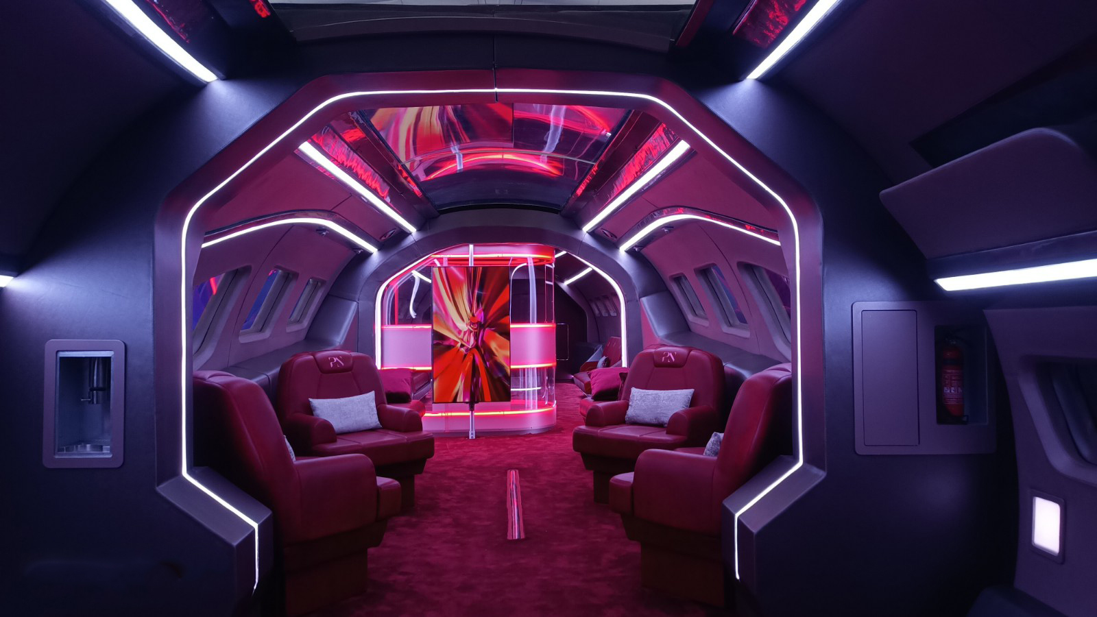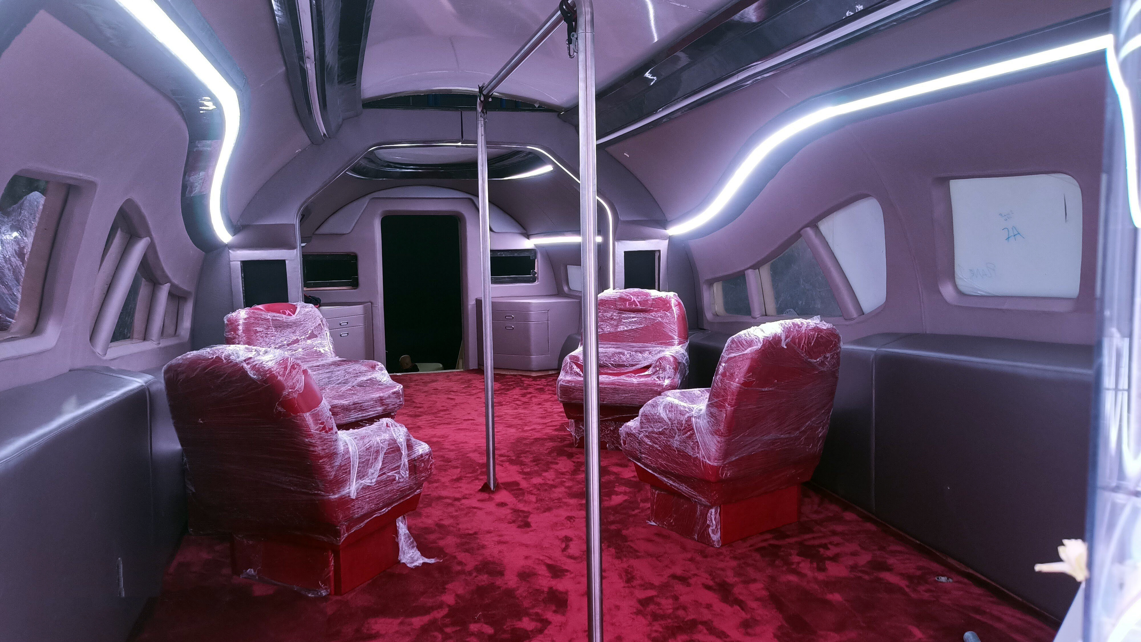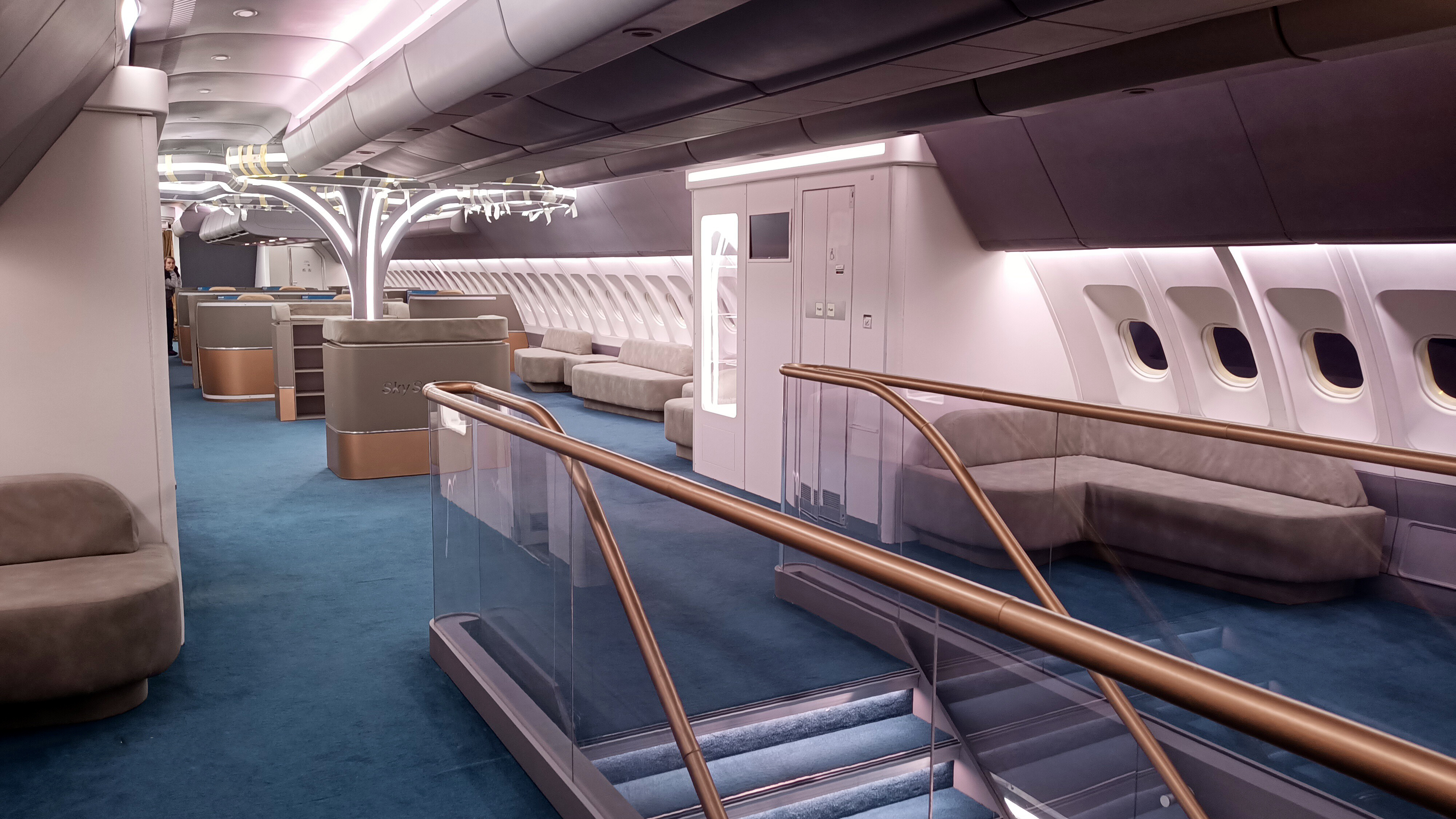 The private jet built was built in three parts. 1st Part was fixed – Lounge, bedroom, bathroom, galley.
