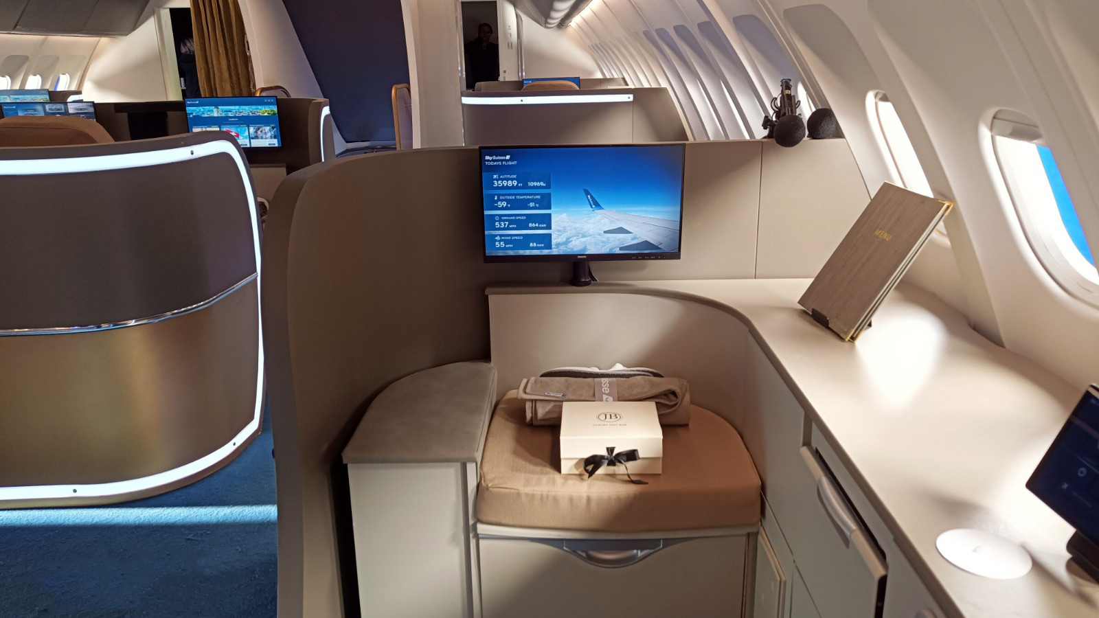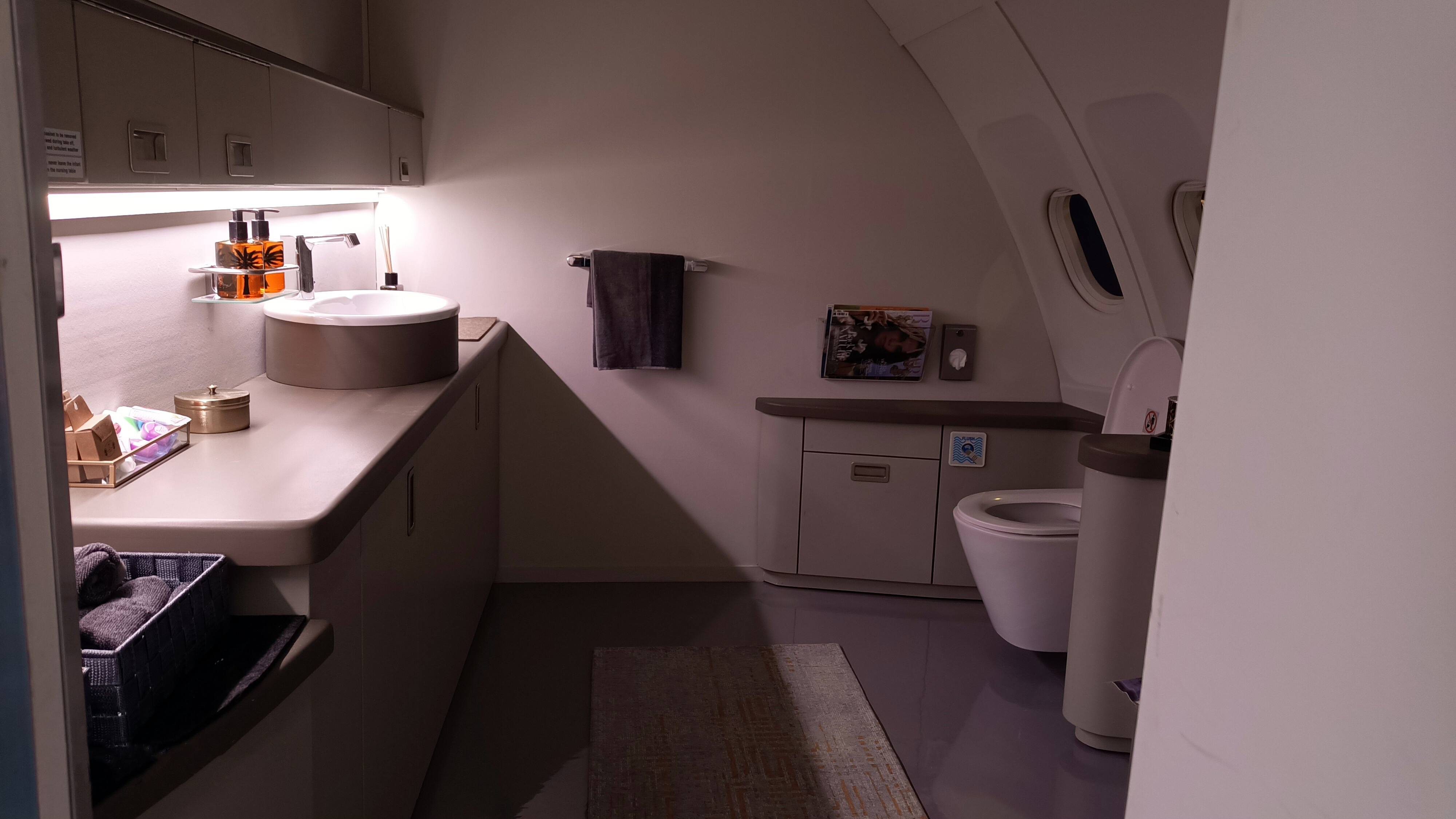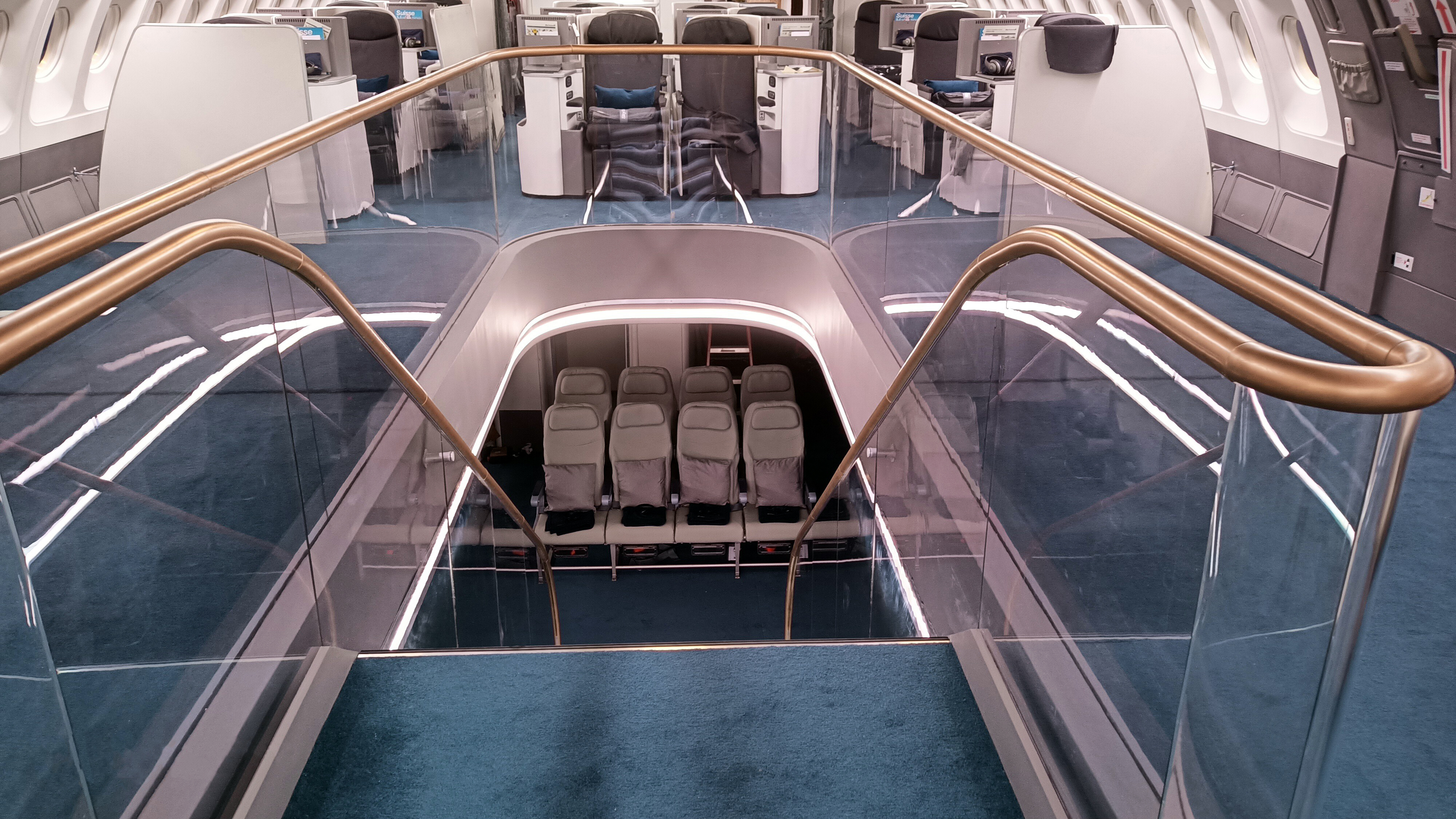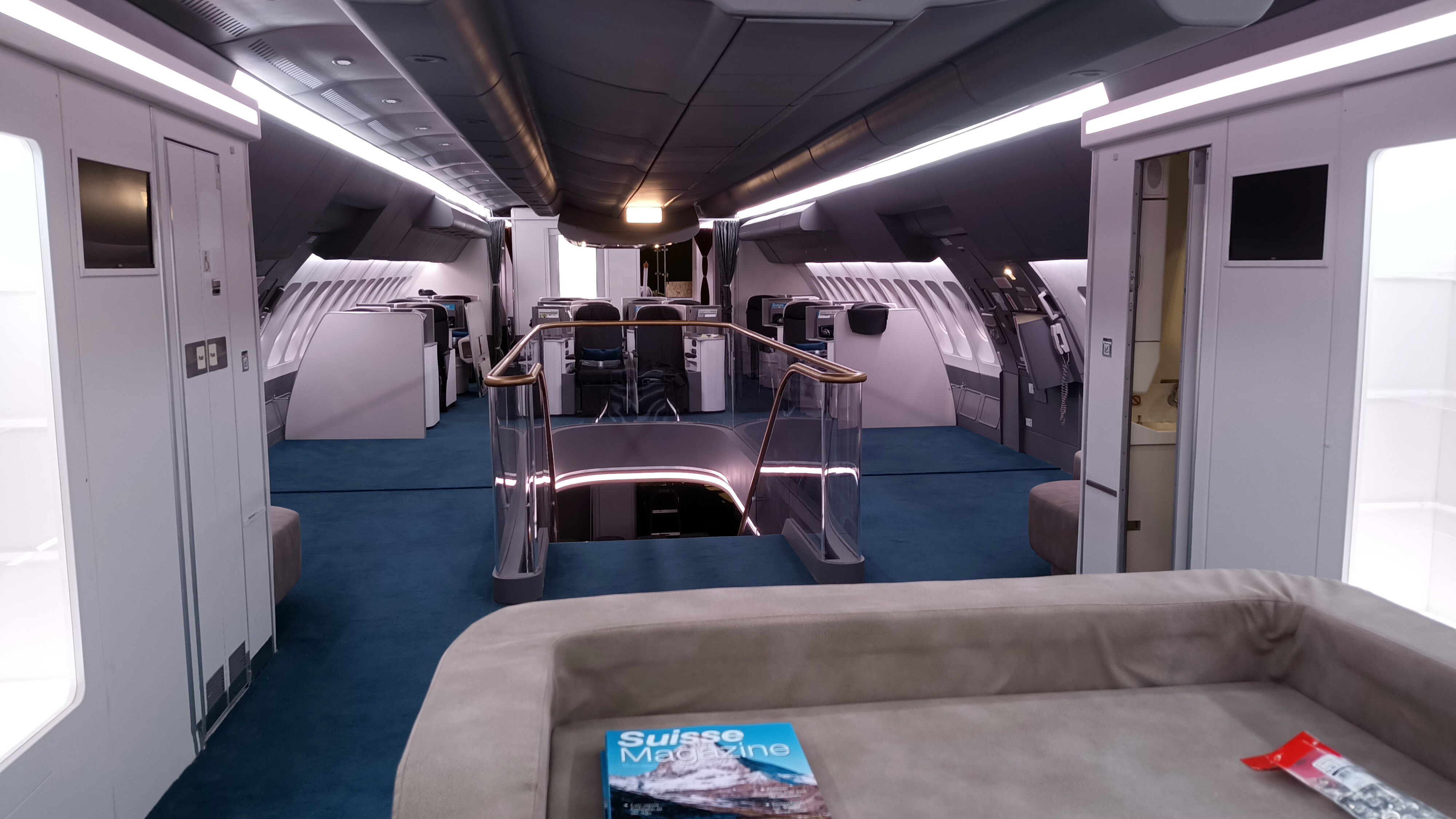 The Airbus A380. One part was built on hydraulic jacks to simulate large turbulence zones & divided into several parts : First class – Business class – Economy class – Premium Economy – Galley – First-class lounge – First-class toilet.