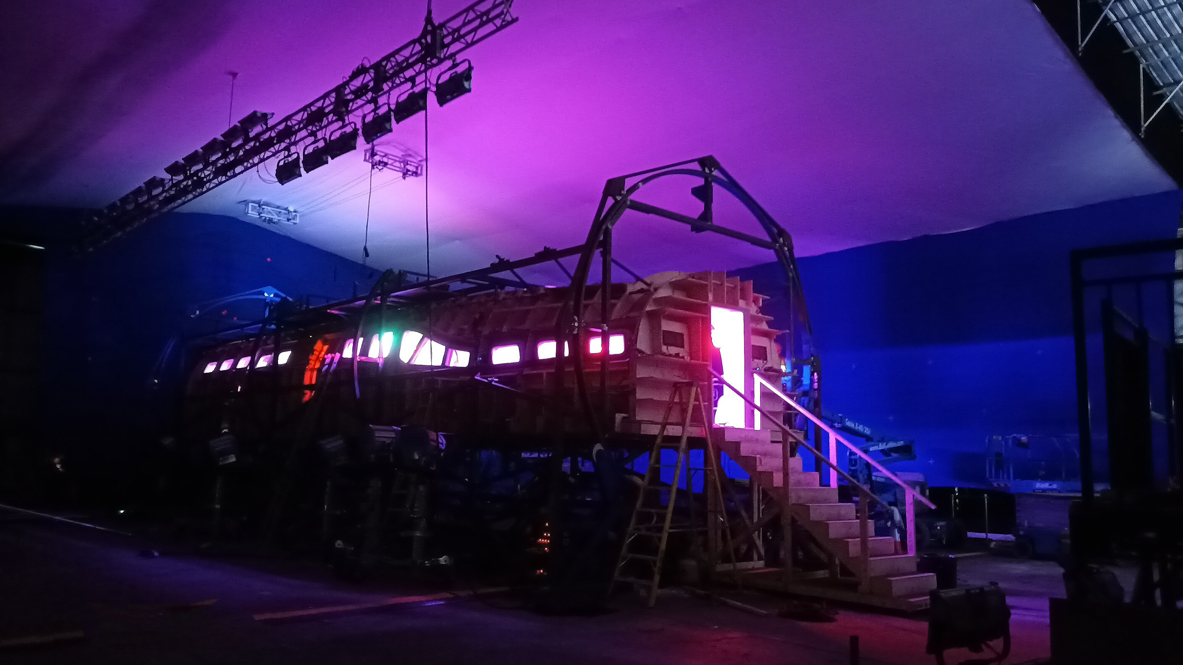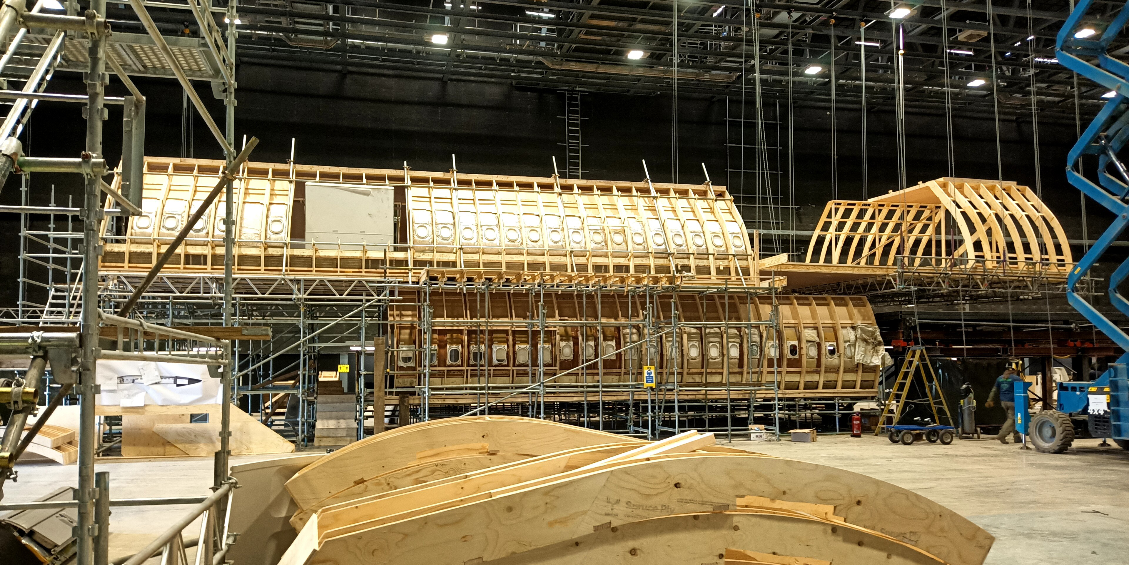 The 2nd part (galley & cockpit) was mounted on a pivoting frame and jack to simulate shaking.